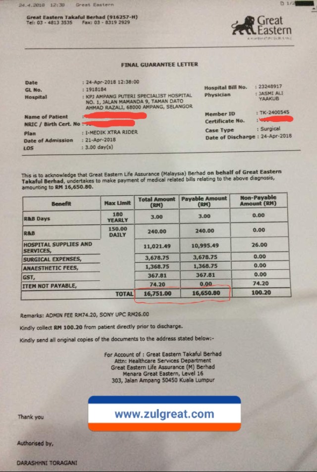 Zul kongsikan perkara ini supaya lebih ramai yang nampak perancangan kewangan dalam aspek perlindungan. Secara kesimpulannya mengambil Plan Medical Kad dapat membantu mengurangkan duit keluar dari poket akibat kos rawatan hospital yang sentiasa meningkat dari masa ke masa.