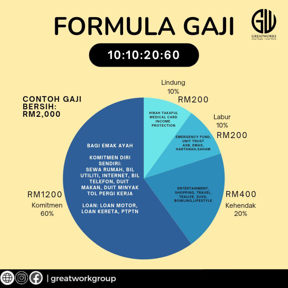 Komitment bulanan paras 60% je. Kalau komitment telah melebihi 60% kena berhati-hati. Takut termasuk dalam kumpulan tikus berlari. Pernah dengar cerita tikus berlari (Rat Race). Pada yg tahu ceritanya boleh ambil teladan.