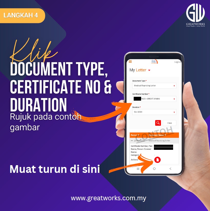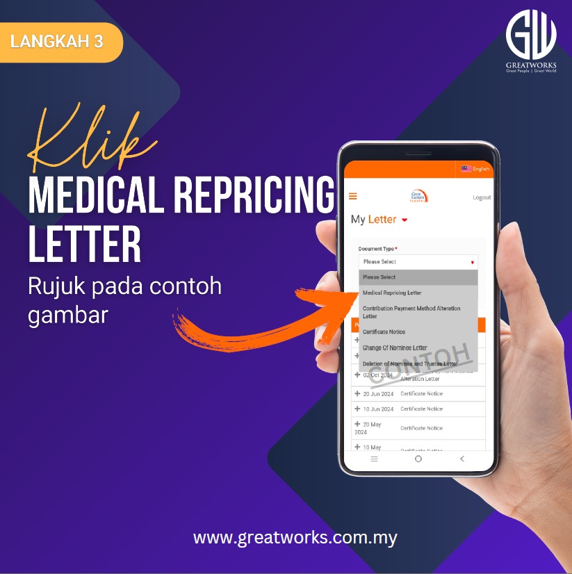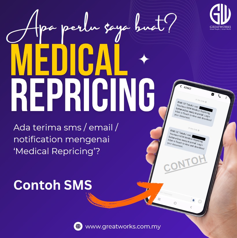 Pastikan anda lihat beberapa poster ini. 4 langkah mudah untuk dapatkan surat medical repricing bagi sijil Great Eastern Takaful.