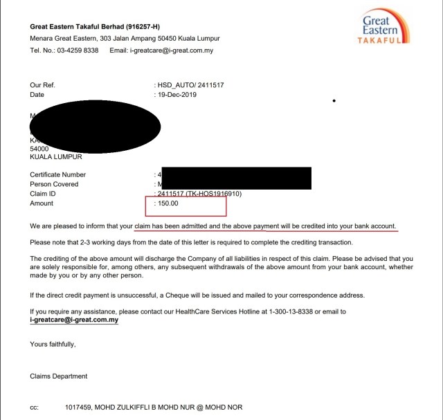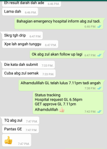 Alhamdulillah Zul juga telah berjaya uruskan claim anak beliau yang warded di hospital. Semoga cepat sembuh. Amin
